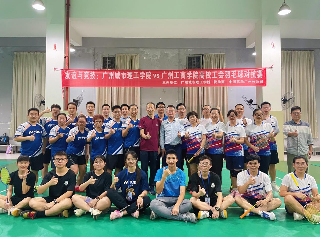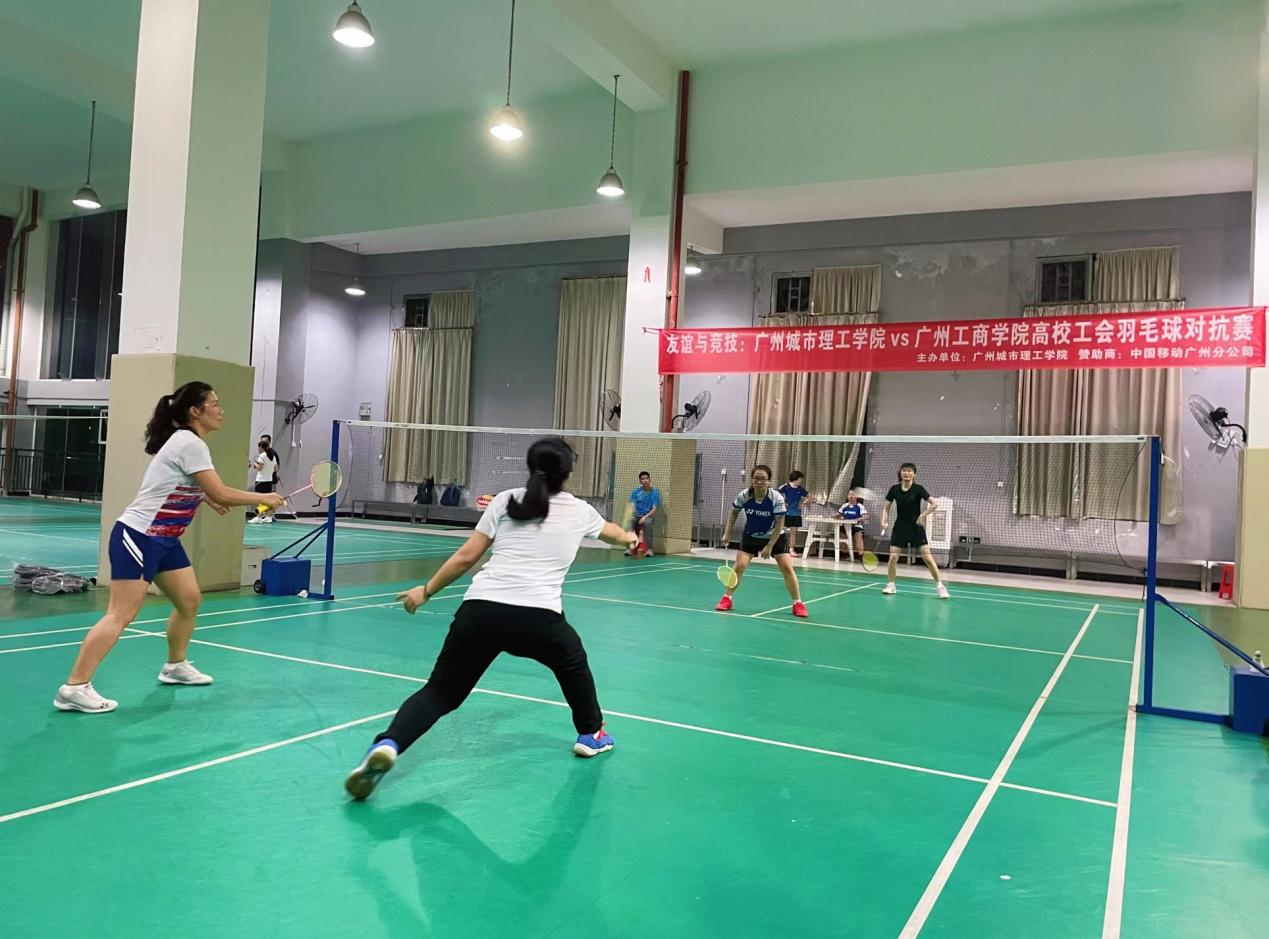 本网讯(记者 陈姣娣)为丰富教职工的精神文化生活,激发教职工的活力和热情,增强学校的凝聚力和战斗力,10月27日晚,我校和广州工商学院在体育馆3楼举行羽毛球联谊赛。我校副校长、工会主席尚启超,工会副主席郭培虹,广州工商学院副校长、工会主席朱特威,常务副主席伍妙琼,中国移动广州分公司相关负责人出席并观摩了本次羽毛球比赛。