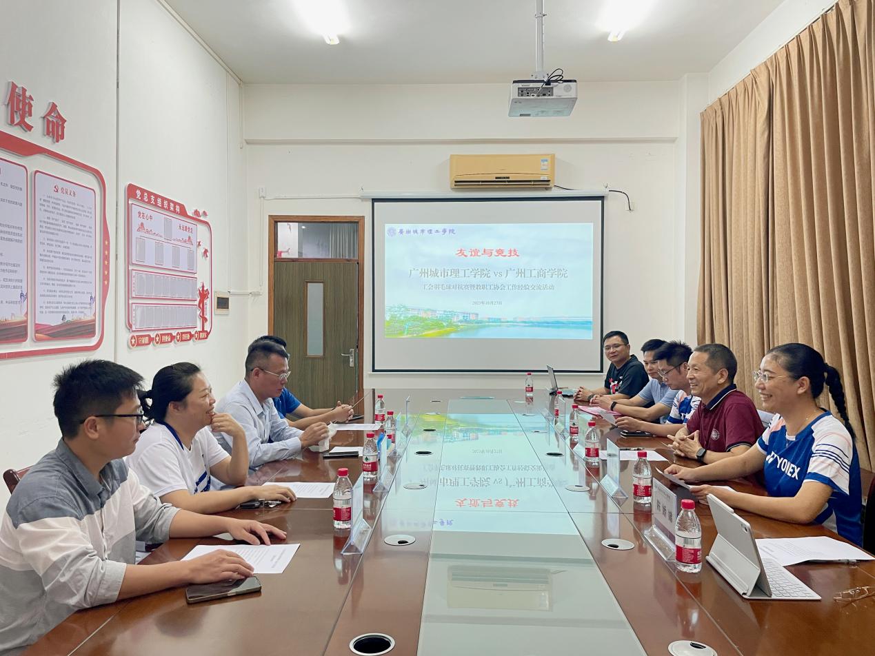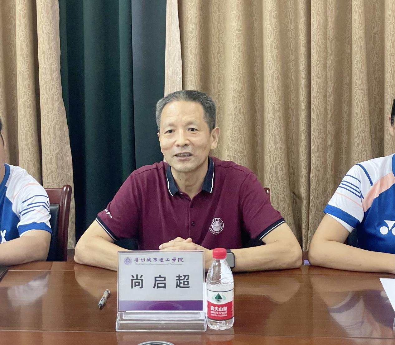 比赛前,我校邀请广州工商学院朱特威一行在体育馆会议室开展了简短的教职工协会工作经验交流会,双方就工会情况、教职工协会等相关内容进行深入交流。尚启超首先对广州工商学院羽毛球校队的光临表示欢迎,并预祝本次羽毛球比赛能取得圆满成功,同时表示“两校依山伴水,一脉相承,广州城市理工学院和广州工商学院作为‘邻居’,长期以来关系十分友好、融洽,疫情之后,让我们赓续传统,以此次工会羽毛球友谊赛为契机,进一步加强在教学、科研、人才培养、和美家庭建设等方面的交流合作,不断深化两校之间的情谊。”