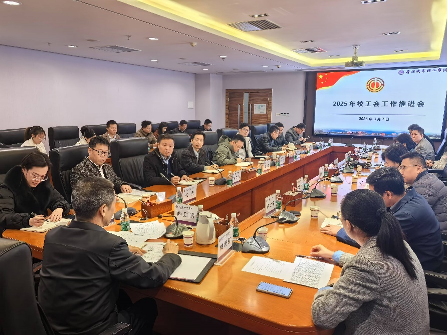本网讯(记者 梁冰)3月7日上午,我校2025年校工会工作推进会在行政楼201会议室召开。校工会主席尚启超,副主席张郡、郭培虹,各学院工会主席及校工会委员参加了此次会议。
