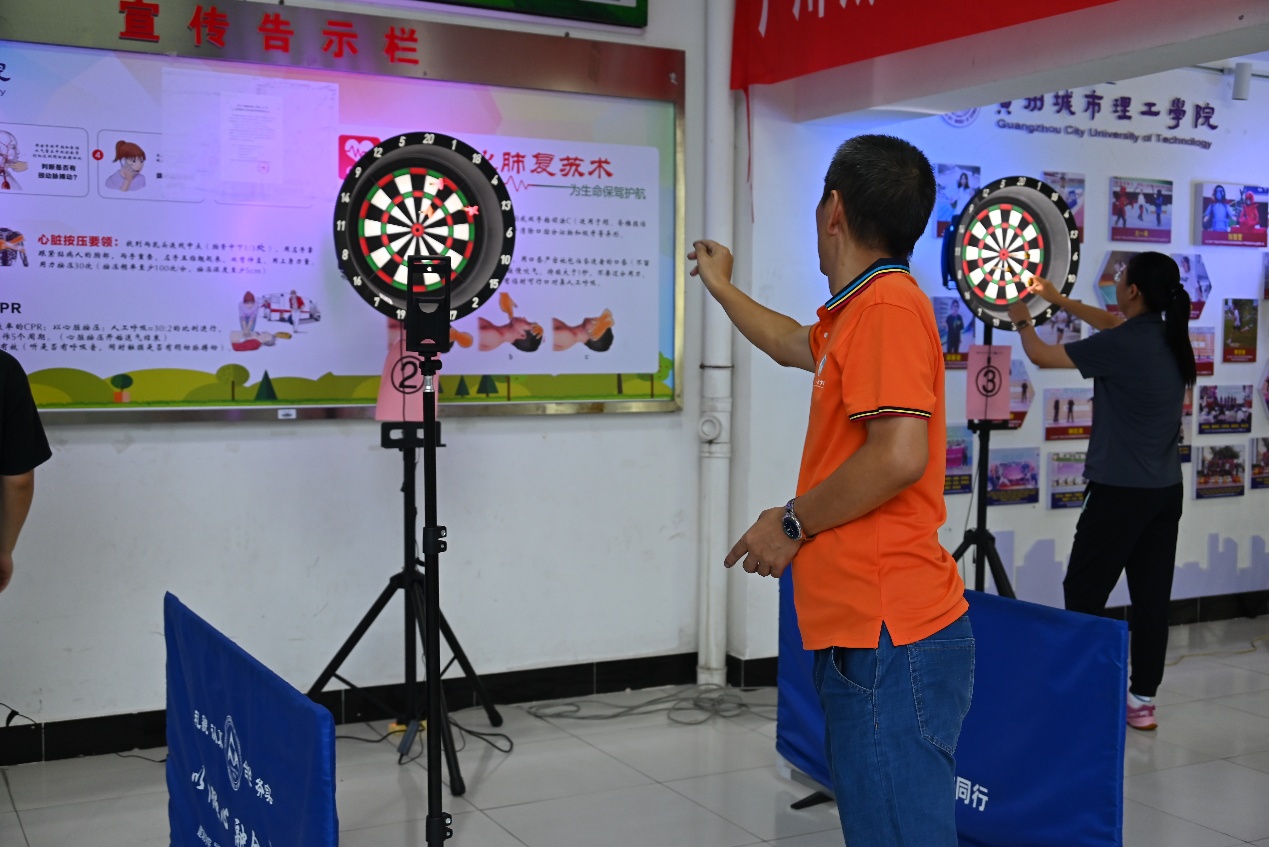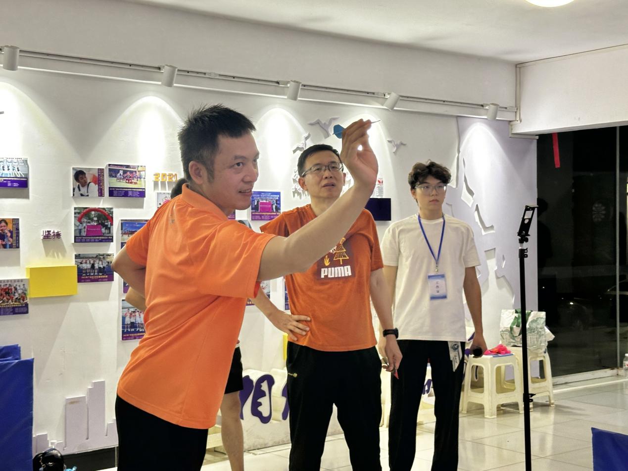 活动开场前,体育中心的飞镖竞技区已布置完毕,专业软式飞镖设备整齐排列,镖道屏幕实时显示计分情况,工作人员提前对设备进行调试,并为参赛教职工讲解比赛规则与安全注意事项。学校工会副主席郭培虹表示,希望通过飞镖这项“轻运动”,让教职工在紧张的工作之余放松身心,同时借助飞镖协会的专业支持,保障赛事公平规范,让大家在竞技中感受运动快乐。飞镖协会工作人员现场演示了飞镖投掷姿势与计分方法,帮助初次接触飞镖的教职工快速熟悉。
